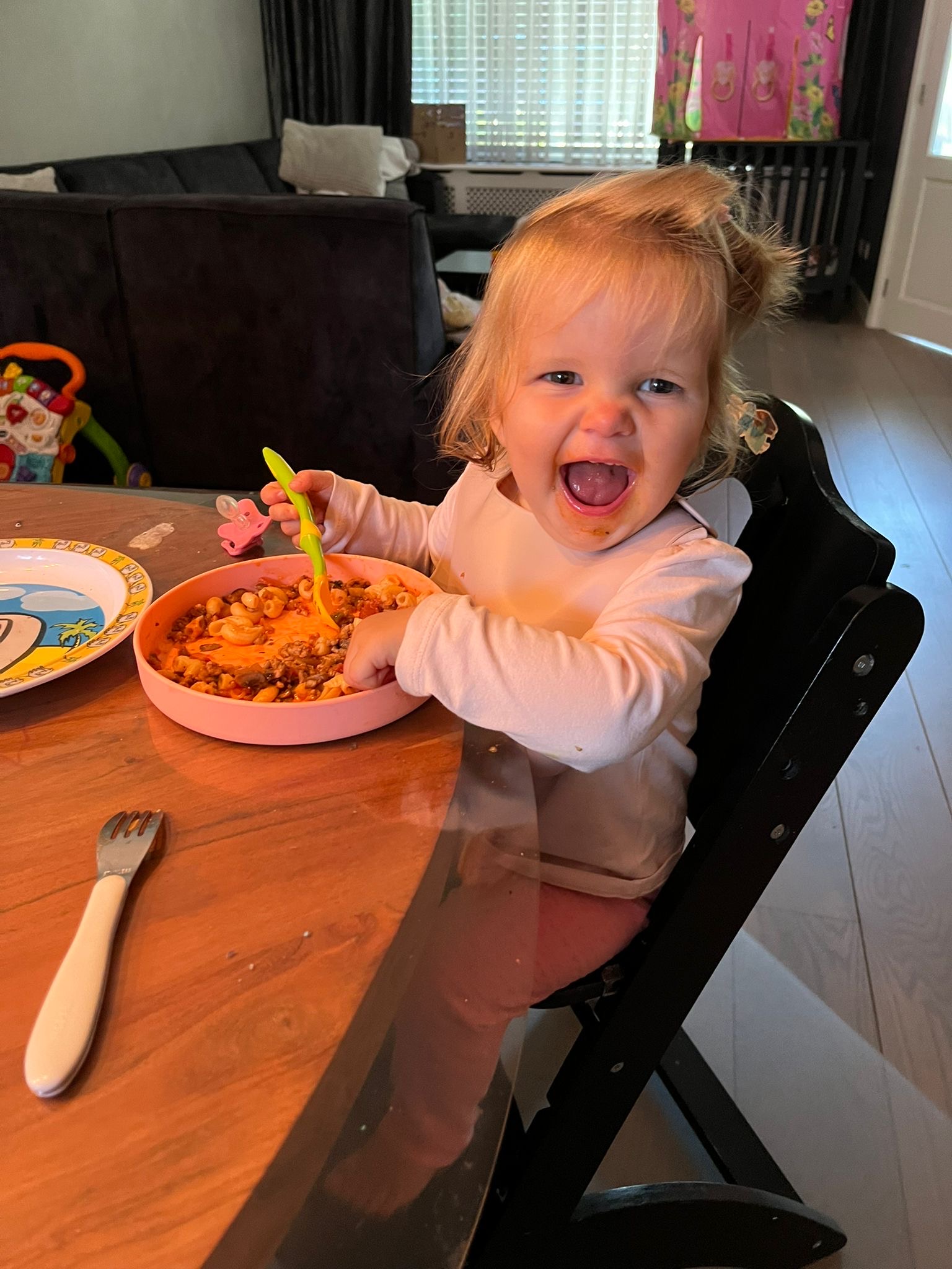 Het leven begint overzichtelijk. Mijn dochter heeft precies één doel: haar pamper zo vol mogelijk krijgen. En als dat gelukt is, volgt het bewijs. Hand op de pamper, blik omhoog en een triomfantelijk ‘OOOOOHHH’. Alsof ze wil zeggen: kijk mij eens. Missie geslaagd.